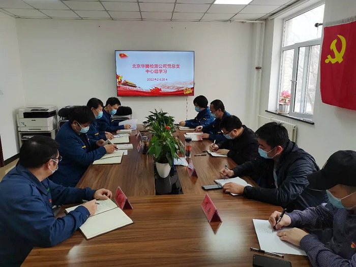 近日,按乐竞平台(中国)党委工作部署,党委宣传部来到华腾检测公司巡听旁听公司党总支中心组学习,乐竞平台(中国)所属两个单位党委书记、副书记参加巡听旁听。华腾检测党总支书记赵春波主持学习,党总支领导班子成员参加学习。