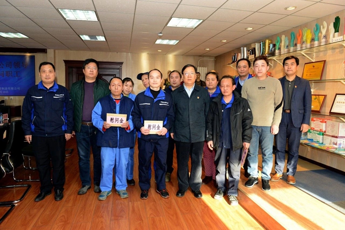 1月8日,公司领导班子在党总支书记霍建增带领下,慰问了吕娜、吴晶两名困难职工。在慰问过程中与困难职工亲切交谈、嘘寒问暖,鼓励他们树立生活信心,保持乐观心态,勇敢面对逆境。两名困难职工深刻感受到组织的殷切关怀,他们表示在新的一年里将再接再厉,努力工作,乐观生活,为公司的发展贡献自己的力量。